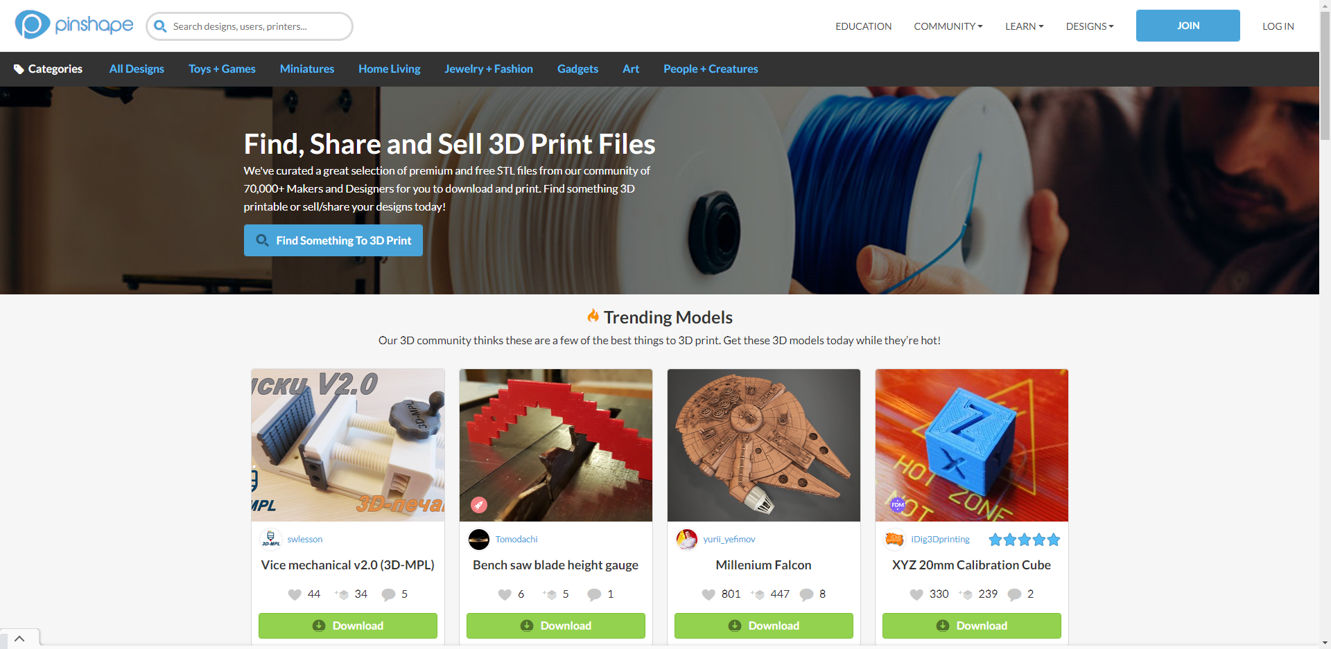 Pinshape是3D內容世界里的另一家知名網站。這個3D社區市場擁有超過55,000為創客和3D設計師,里面既有免費的STL文件也有需要付費的STL文件。